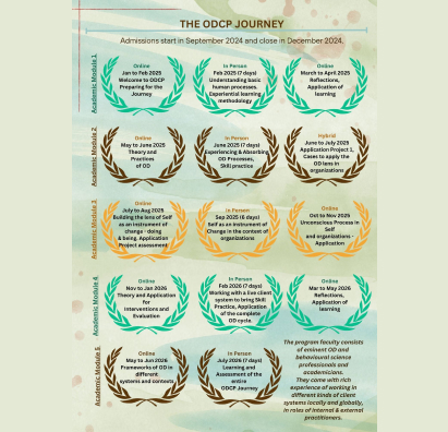 In our OD Certification Programme, the practice of OD is envisaged as a process of co-creation with members of the organization, while enabling people, groups and processes to facilitate desired change towards greater organizational effectiveness.
